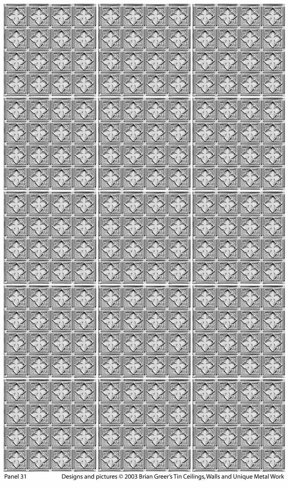 Pages for printing, cutting and assembling a scale-model of your tin ceiling design. Used to help you design your ceiling and plan how many pieces need to be ordered.